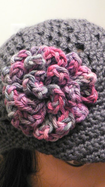 Sarah was having a contest for a free hat for the person that came up with a name for her company. She ended up thinking up the name herself, but put all our names in a hat (for those that submitted names) and drew one anyways. And it was me!! This is the hat I chose. I love it in the stone grey, grape, or striped! I told her to surprise me with color and/or flower. I've never worn anything like this, but am excited to try!